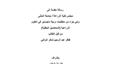 رسالة ماجستير بعنوان (تقييم كفاءة مستحضر احيائي للفطر Trichoderma virideوالاسمدة العضوية في مكافحة مرضي الذبول الفيوزارمي وتبقع الاوراق في الطماطة)…